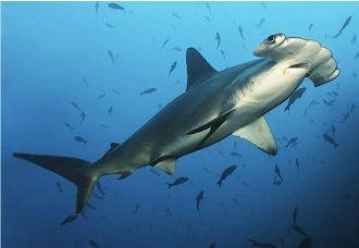 현재 약 400여 종에 달하는 상어가 살고 있습니다. 귀상어는 아주 독특한 모양을 한 상어로 손꼽힙니다. 마치 조물주가 눈알을 붙들고 좌우로 좍 벌려 당긴 모양을 하고 있으니까요. 이 모양이 너무 인상적이어서 귀상어를 영어로는 Hammerhead shark라고 합니다.