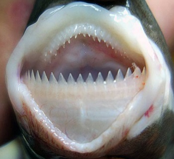 쿠키커터 상어는 먹이활동을 위해 항상 날카로운 이빨을 준비하고 있어야 합니다. 때문에 다른 상어와 마찬가지로 이빨이 손상될 때마다 새로운 이빨이 자랍니다. 다른 상어는 손상된 이빨을 버리지만 쿠키커터 상어는 이빨을 삼킵니다. 과학자들은 헌 이빨을 삼키는 이유로 새 이빨을 만들 영양분을 마련하기 위한 것으로 보고 있습니다.